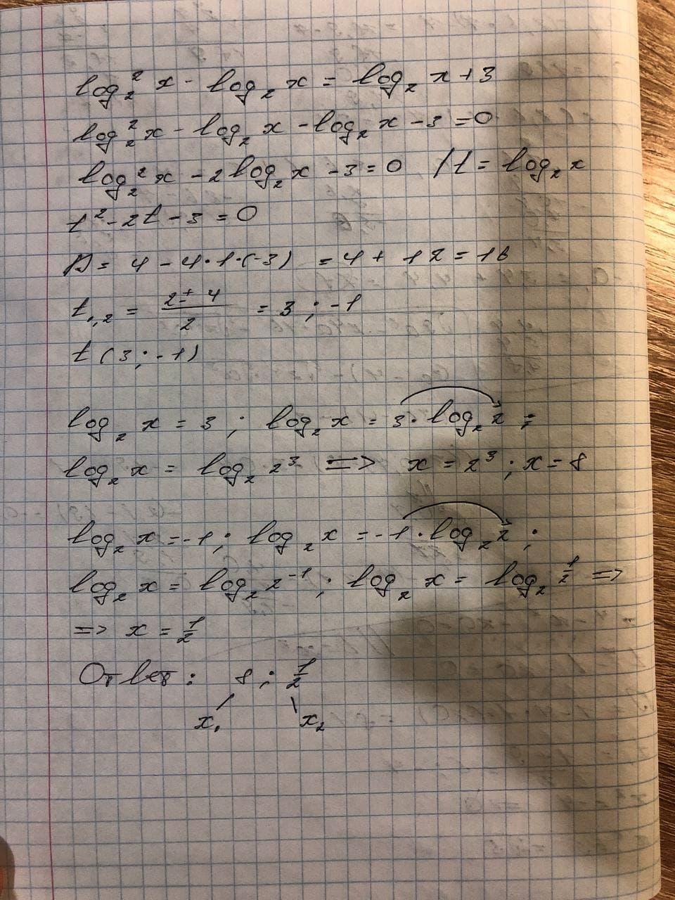 4) t = ㏒₂x, заменяем t на ㏒₂x, приравнивая его к нашим корням t (3; -1);