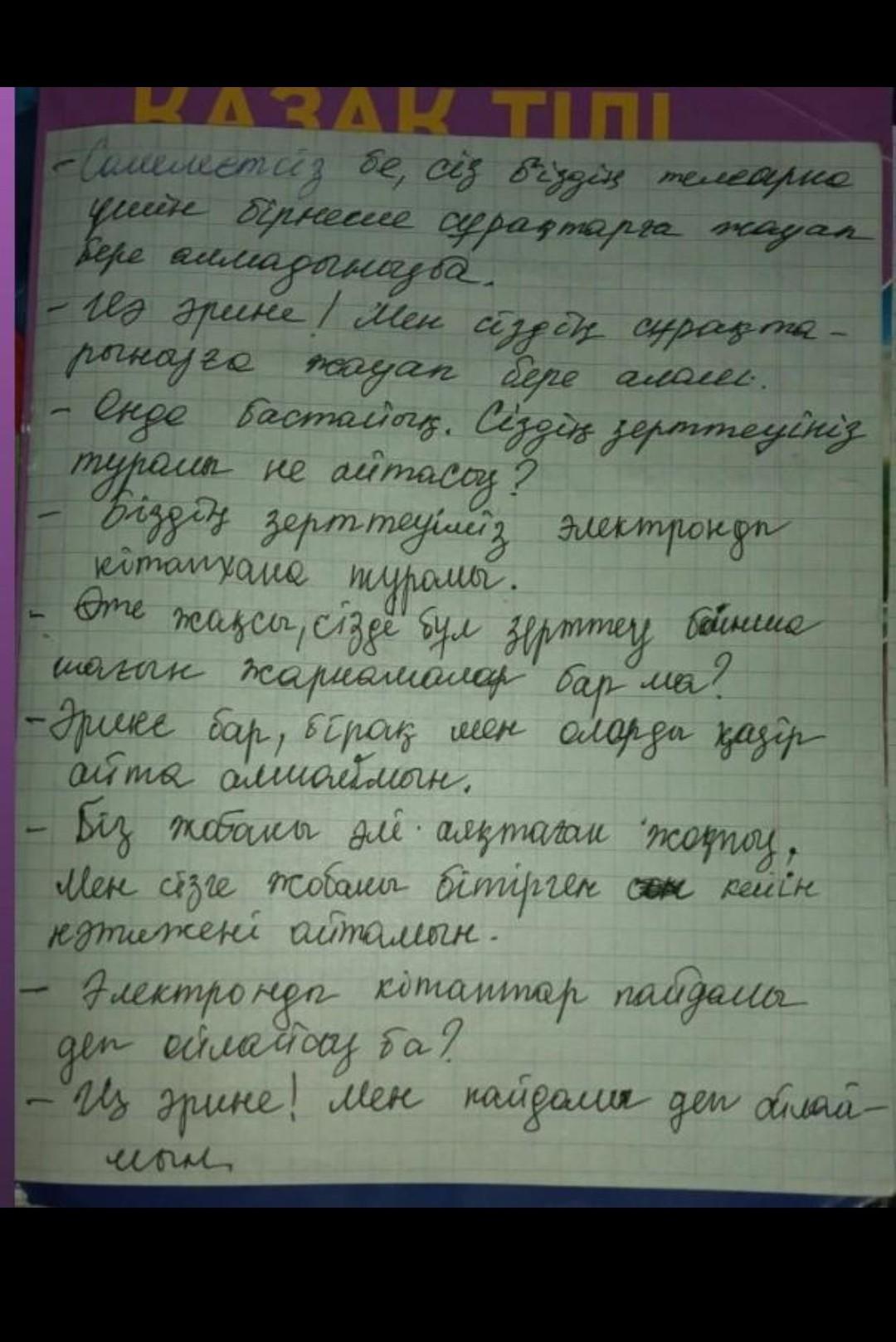 не мение 10 предложений на Казахском, вставишь чужие работы бан