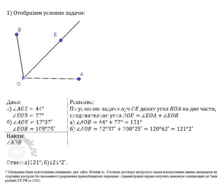 47 Луч о делит угол Аов на два утаа. Найдите Аов, если: a) LAO = 44", CEOB=77": 6) Аок - 1237, 2ков 108 25. аѕ Луч оС делит угол Аов на два угаа. Найдите утосов, если Аов 78, а уго Аос на 18 меньше угла Вос. 49 Луч оС делит угол Аов на две угаа. Найдите угол АОС, если Аов - 155, а угол АОС на 15 больше утаа сов. 50 Угол Аов является частью угла АОС. Навестно, что AOC 108 Аов - 3 Вос. Найдите угол АОВ.