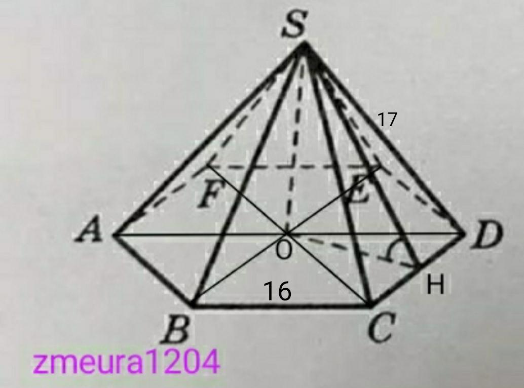SH=√(SC²-CH²)=√(17²-8²)=√(289-64)=