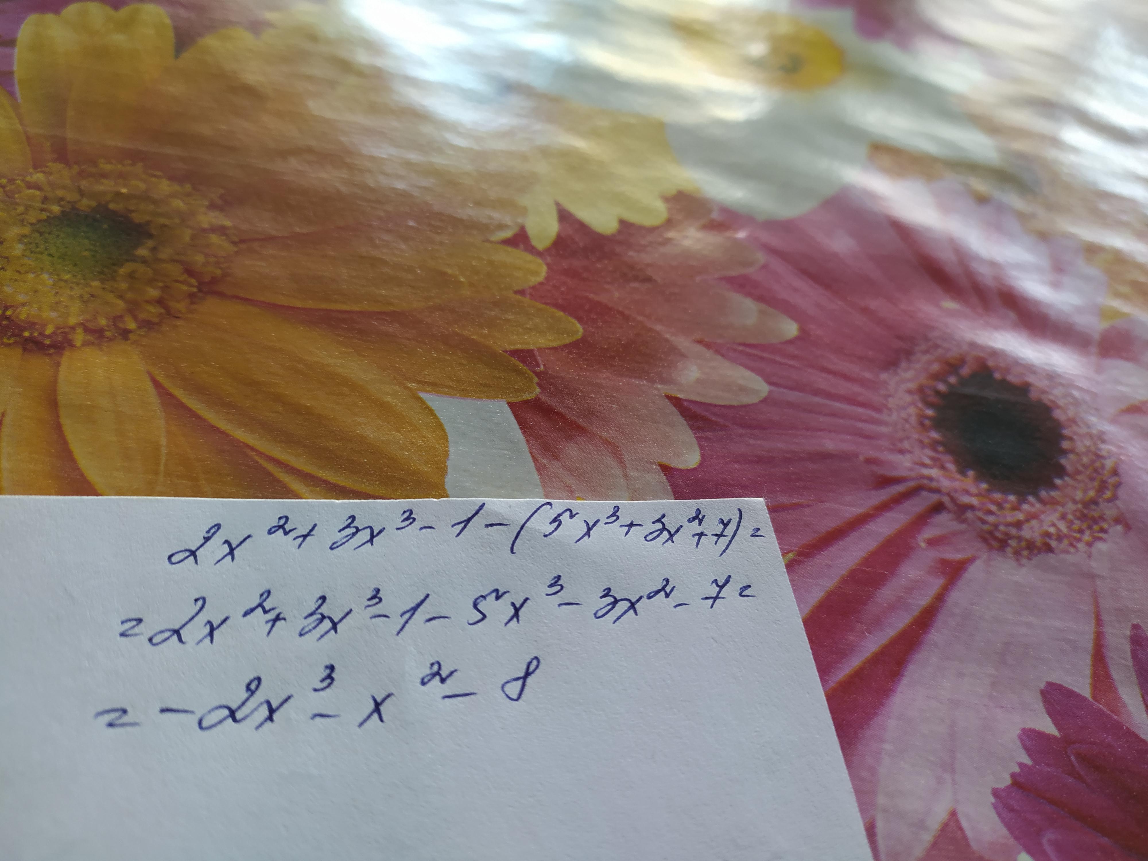 Знайдіть різницю многочленів: 2x2 + 3x3-1 і 5х3+ 3х2 +7(там де после ікса то в квадраті і так дальше ) срочннооо