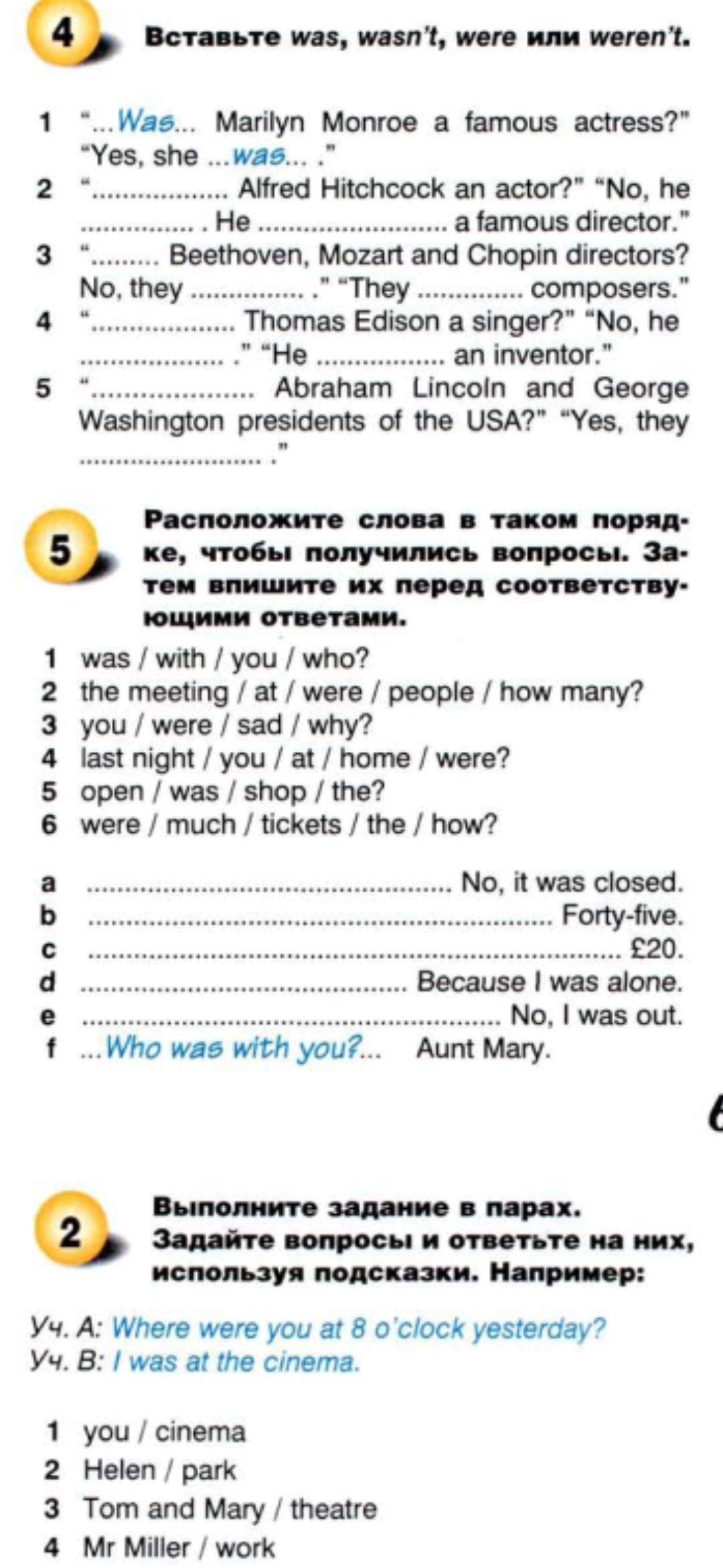 4. We're you at home last night?. E. No, I was out.