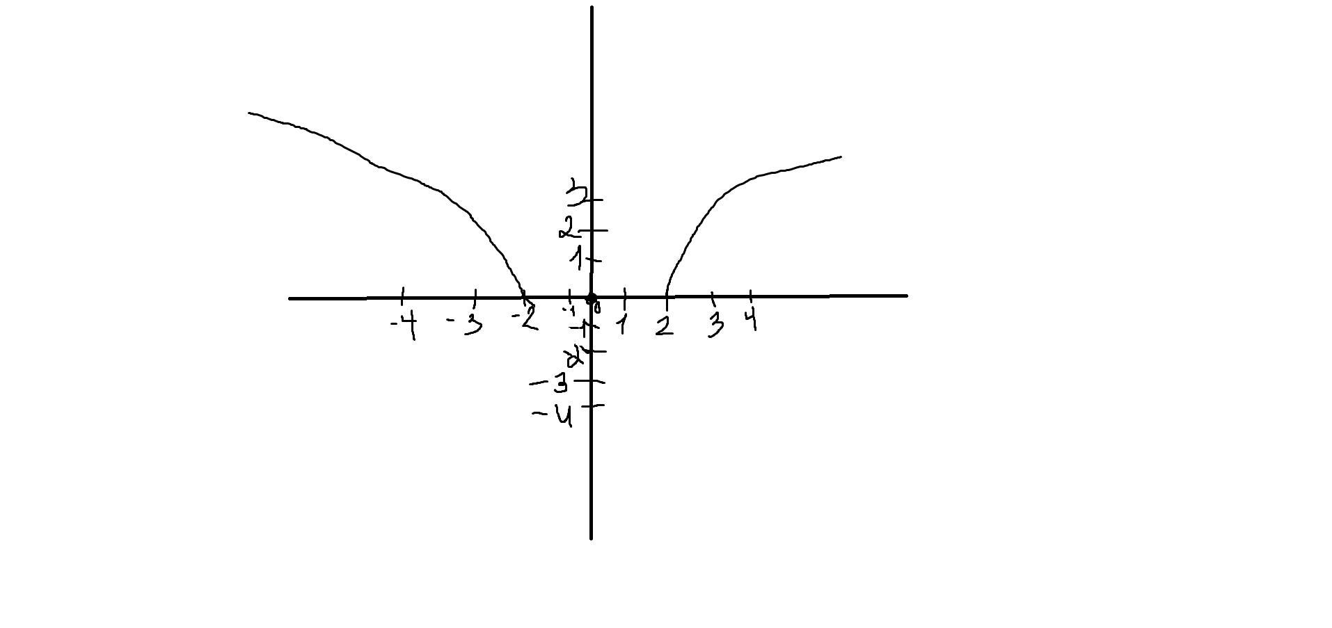 по графику ясно что область определения=x∈(+∞;-2] [2;+∞)