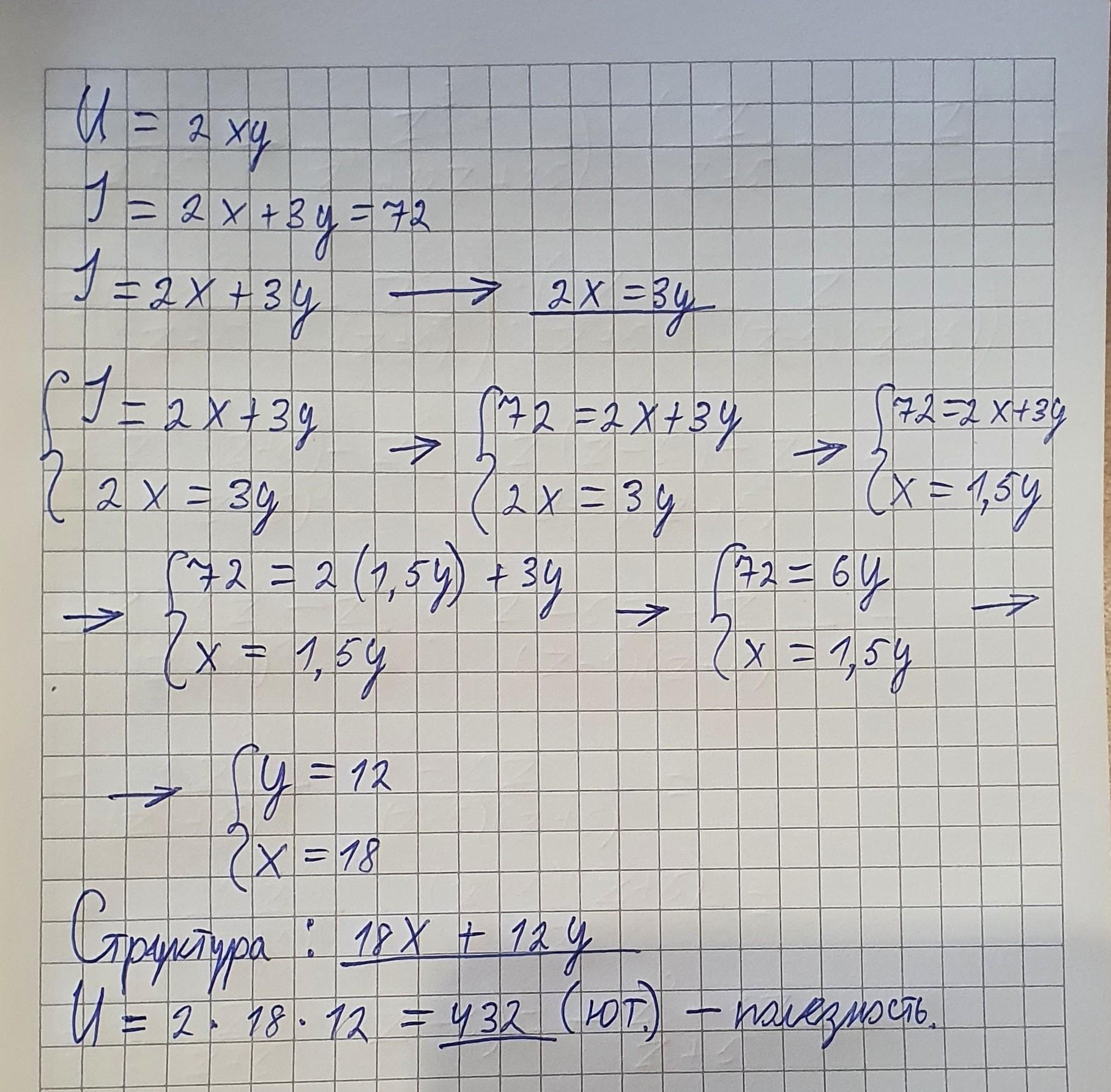 U=2xy, - функция полезности потребителя, стремится к максимуму