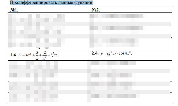 1.4 . y = 4x⁵ + 5/x + 2/x⁴ - ∛x² = 4x⁵ + 5x⁻¹ + 2x⁻⁴ - x^(2/3) ;