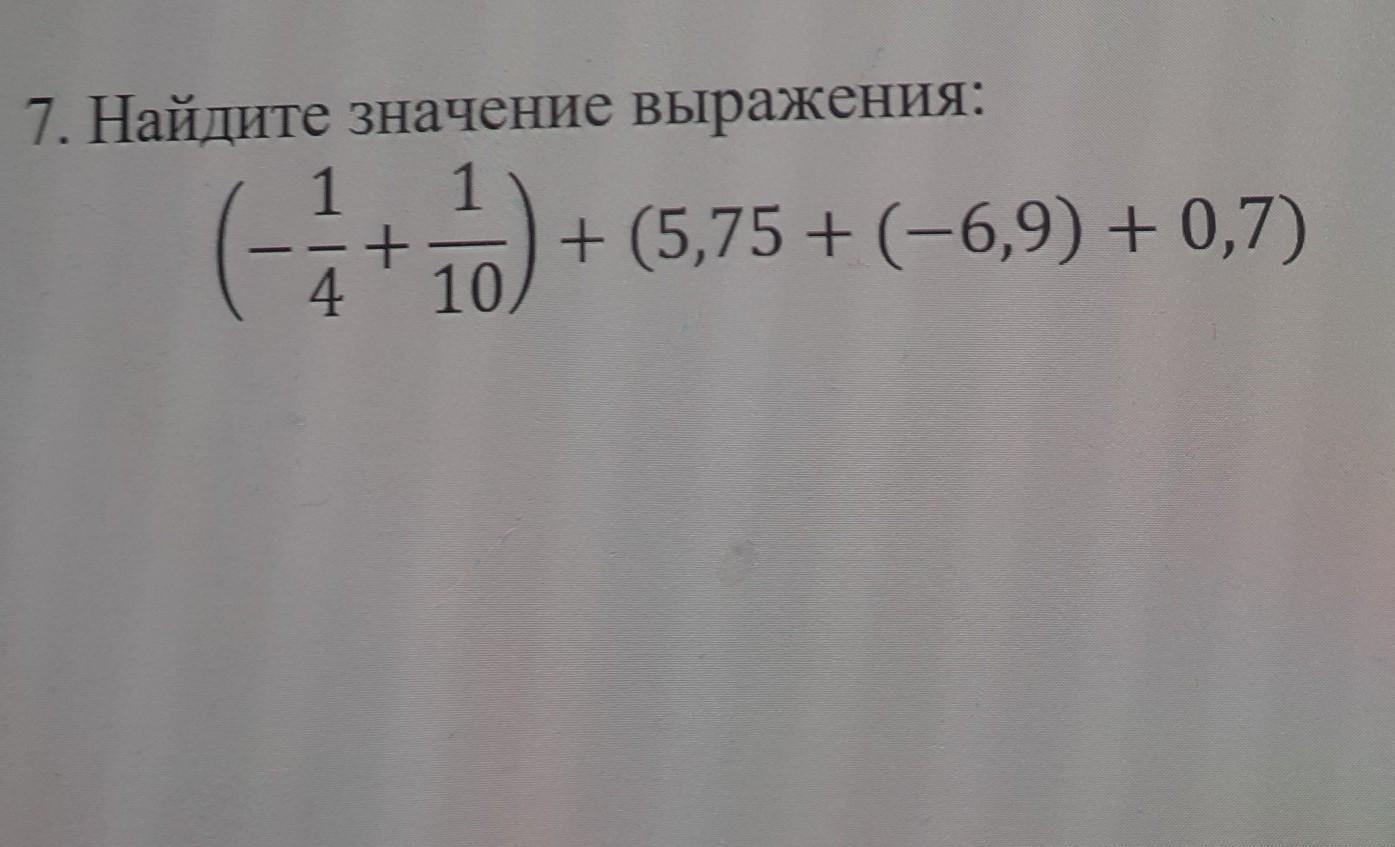 =(-5/20+2/20)+(5,75-6,9+0,7)=-3/20+(-0,45)=-3/20-45/100=-15/100-45/100=-60/100=-0,60