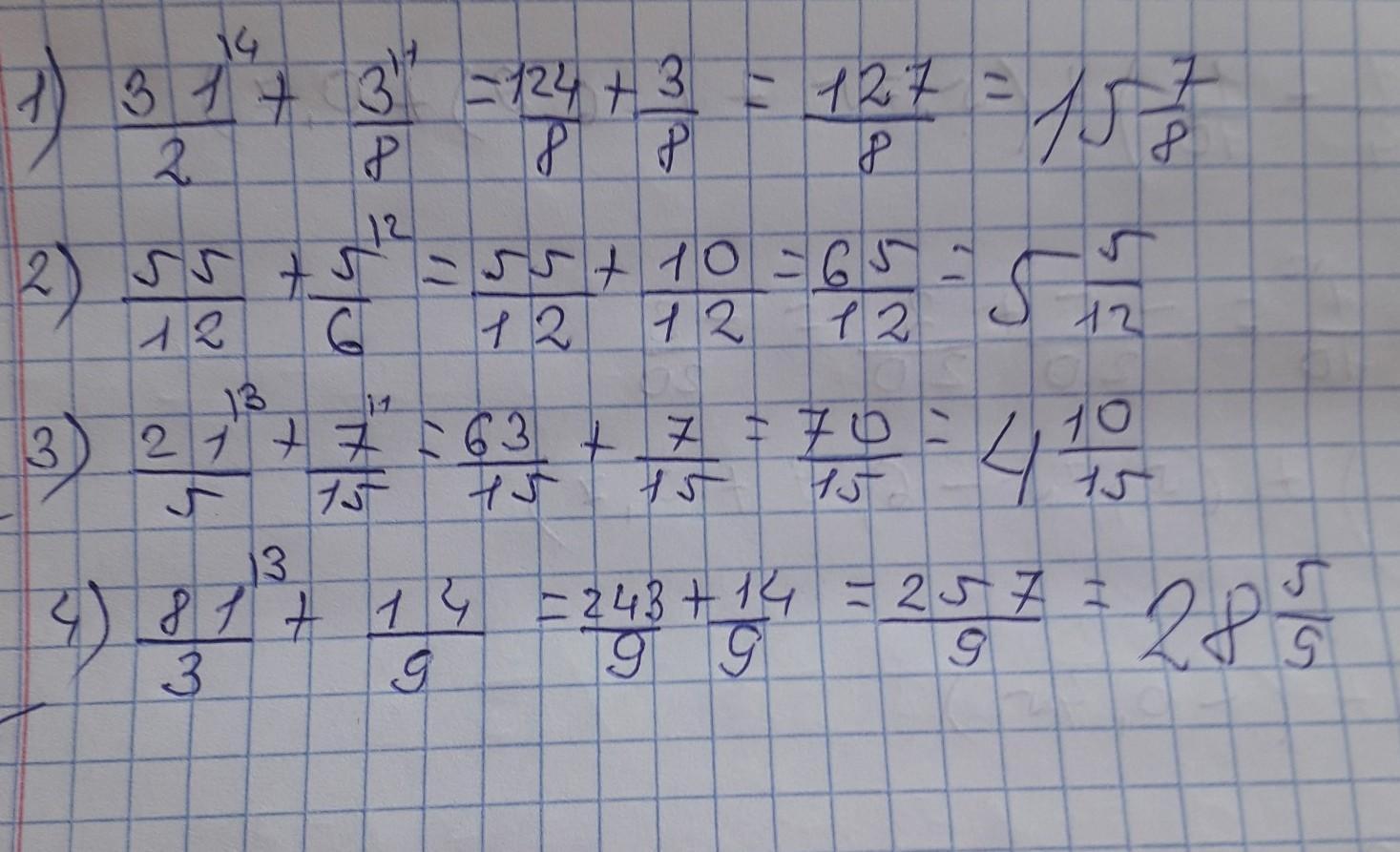 3) 2 1/5+7/15 =2 3/15+7/15=2 2/3