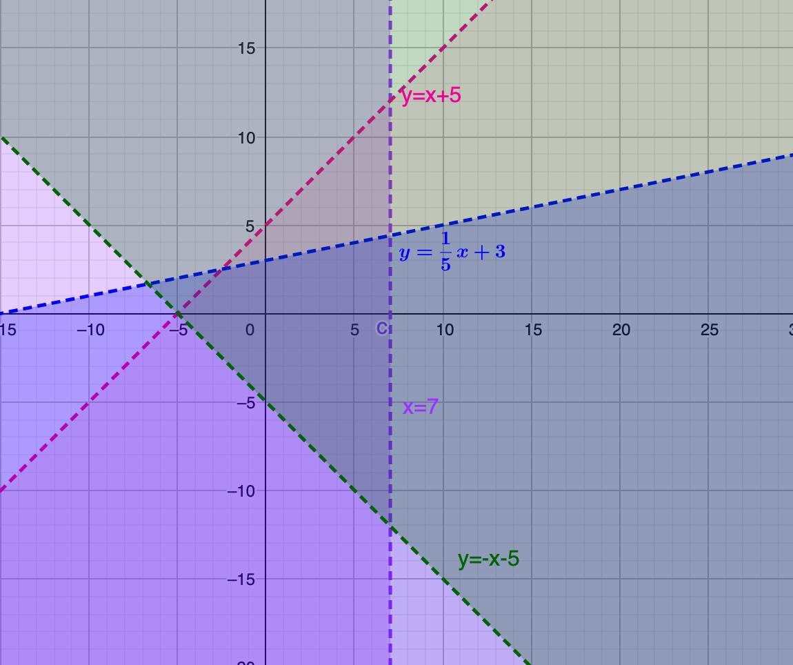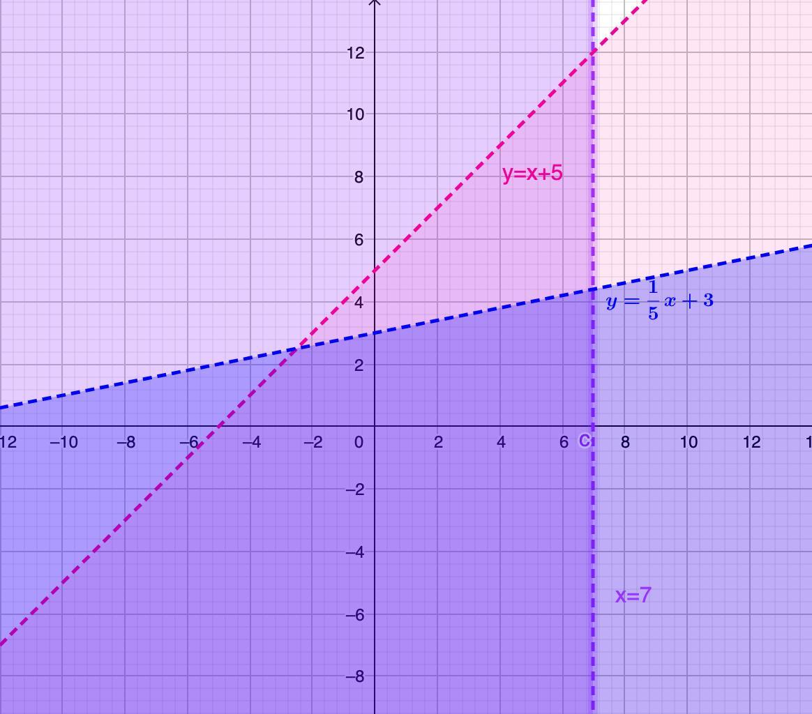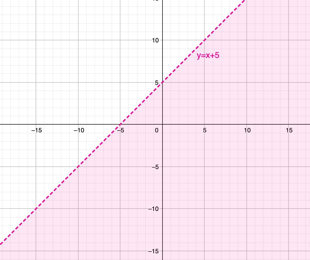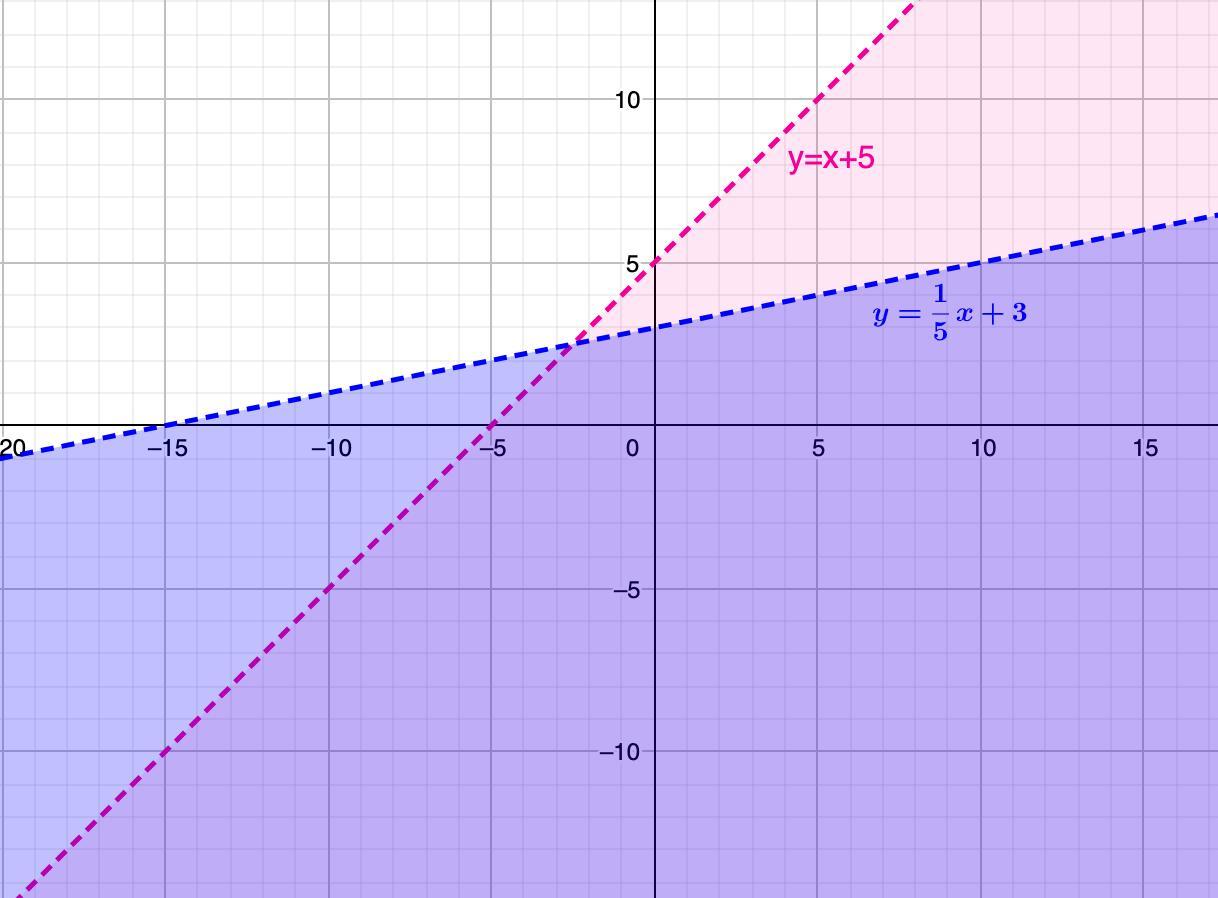 Построим первый график. Линейная функция, график прямая. Решением будет часть плоскости ниже этого графика.