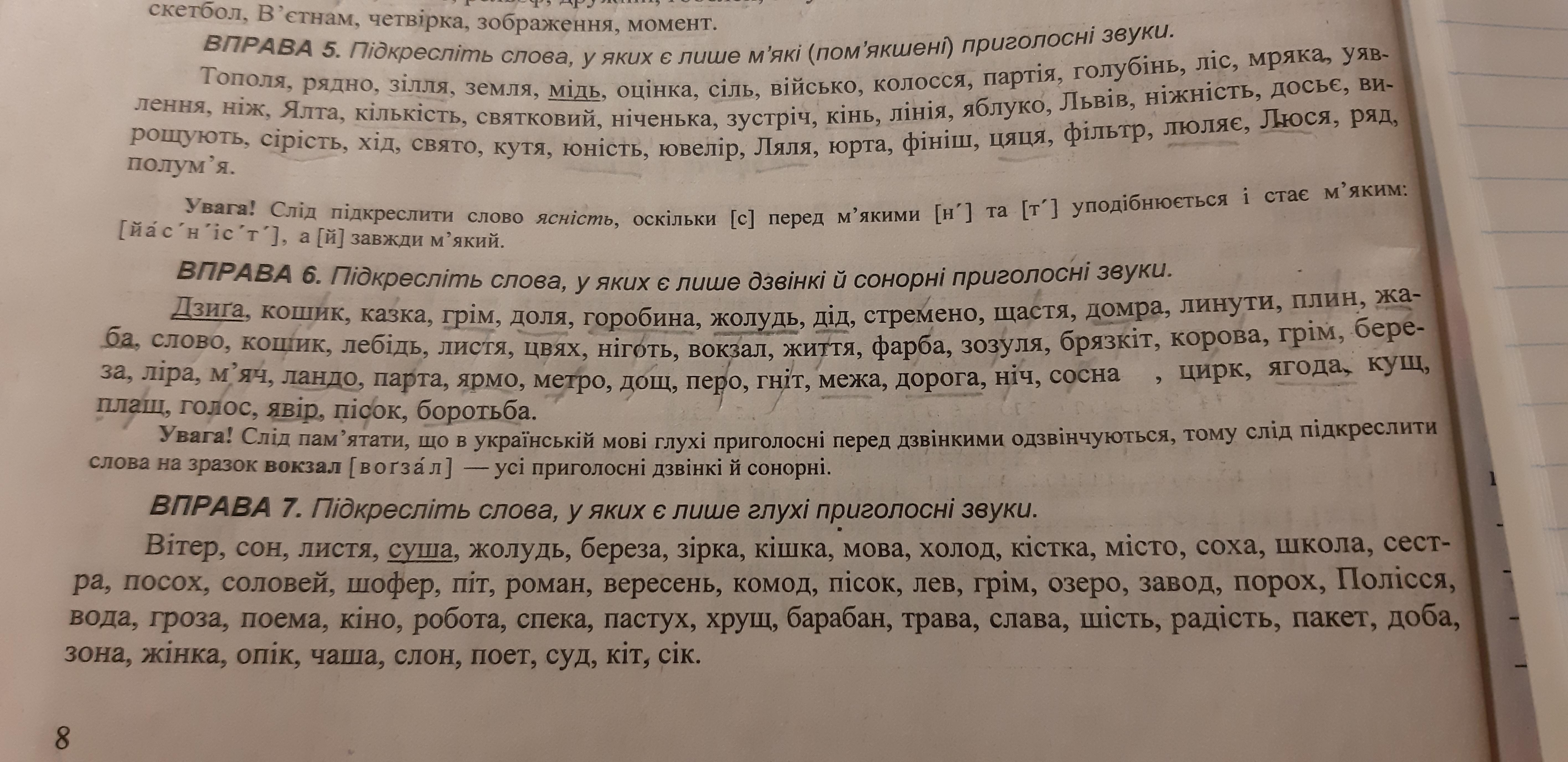 Відповідь: суша ( "с" і "ш"), кішка ("к" і "ш"), кістка ("к", "с" і "т"), соха ("с" і "х"), посох ("п", "с" і "х"), піт ("п" і "т"), пісок ("п", "с" і "к"), спека ("с", "п" і "к"), пастух ("п", "с", "т" і "х"), шість ("ш", "с" і "т'"), пакет ("п", "к" і "т"), опік ("п" і "к"), чаша ("ч" і "ш"), поет ("п" і "т"), кіт ("к" і "т") і сік ("с" і "к").