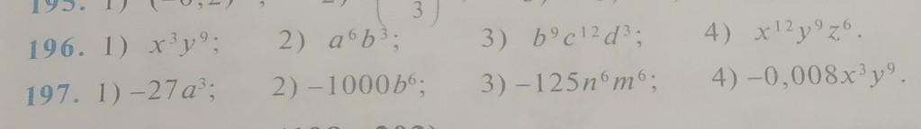 197 . 1 ) - 27a³ = (- 3a )³ ; 3 ) - 125n⁶m⁶ = (- 5n²m² )³ ;