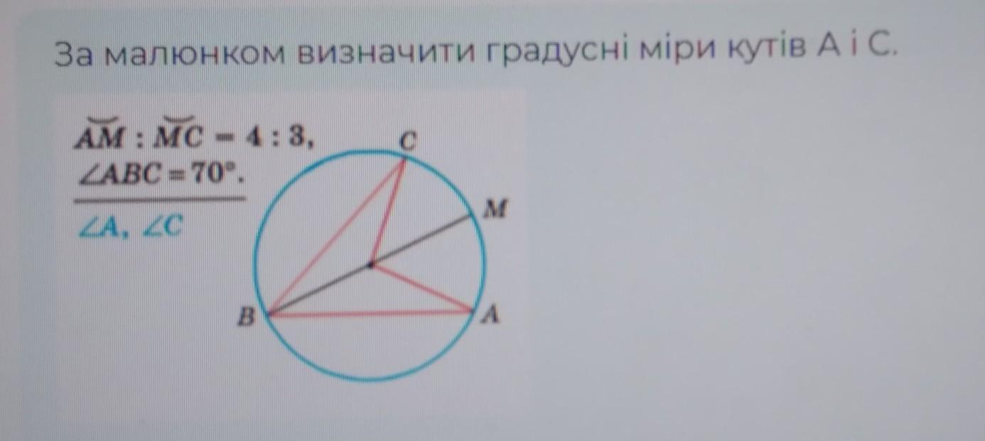 ДАМ 50 БАЛЛОВ!! За малюнком визначити градусні міри кутів А і С.