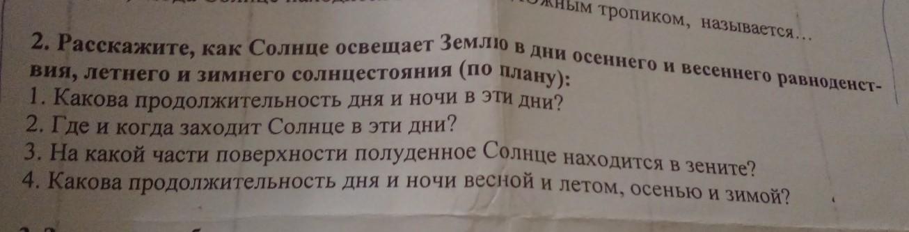 расскажите как солнце освещает землю в дни осеннего и весеннего равноденствия, летнего и зимнего солнцестояния (по плану):