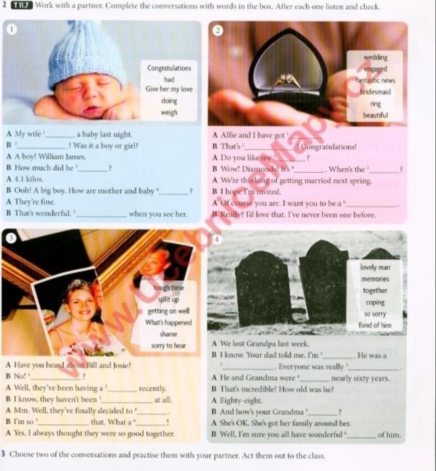Work with a partner Complete the conversations with words in the box. After each one listen and check