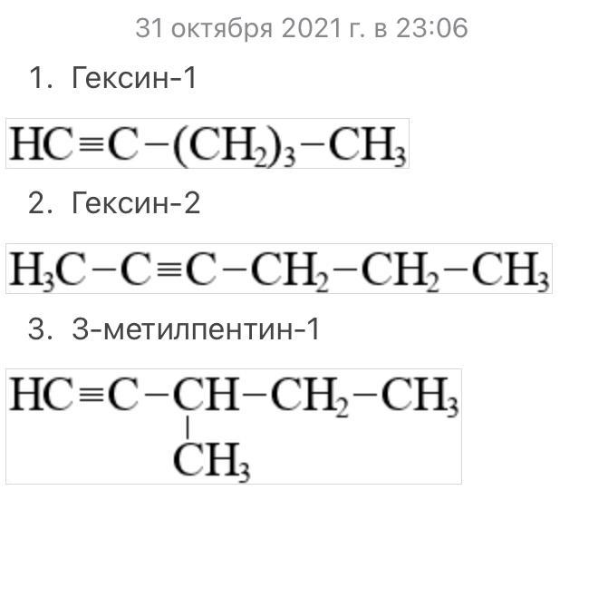 Для алкина, который имеет 6 атомов Карбона составьте три структурных изомера и назовите их.