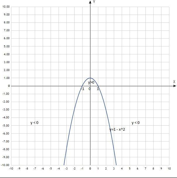 Определить значения х, при которых у>0; y<0.