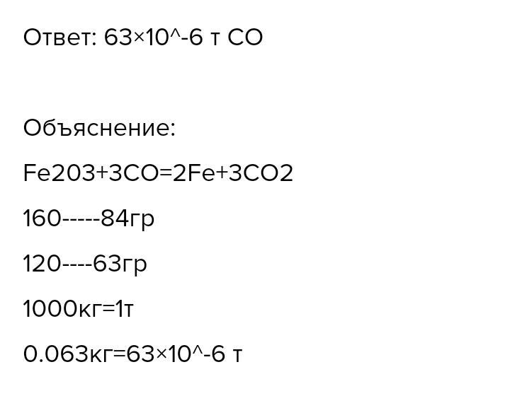 Сколько тонн оксида углерода(||) должно вступить в реакцию для полного восстановления 120 г. Оксида железа (|||)