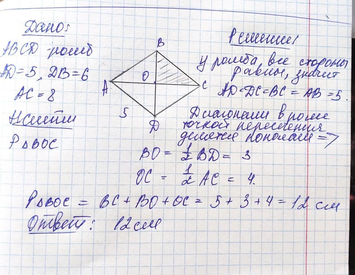 ромб ABCD значит все стороны равны значит BC равно 6 сантиметров