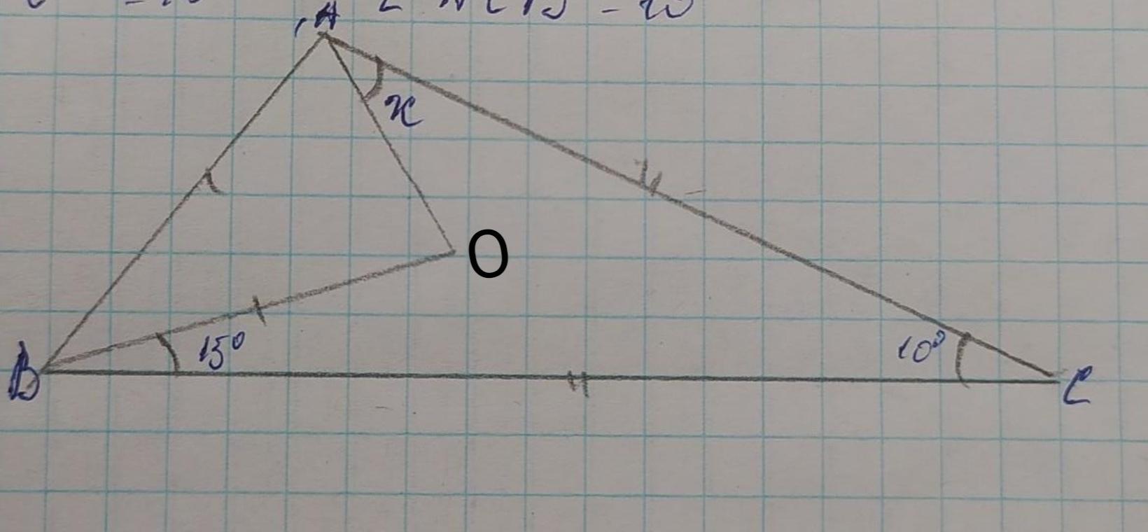 ∆ОВА- равнобедренный треугольник ВО=ВА,по условию.