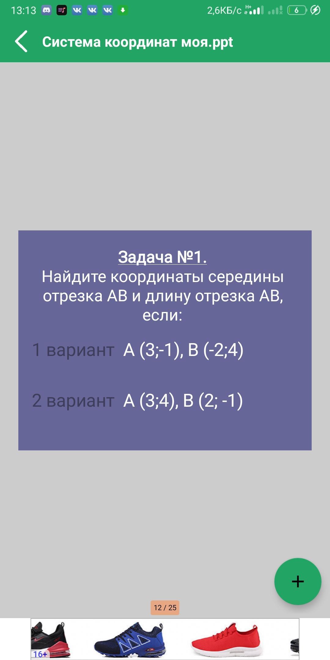 Ответ: координаты середины АВ (2,5;1,5)