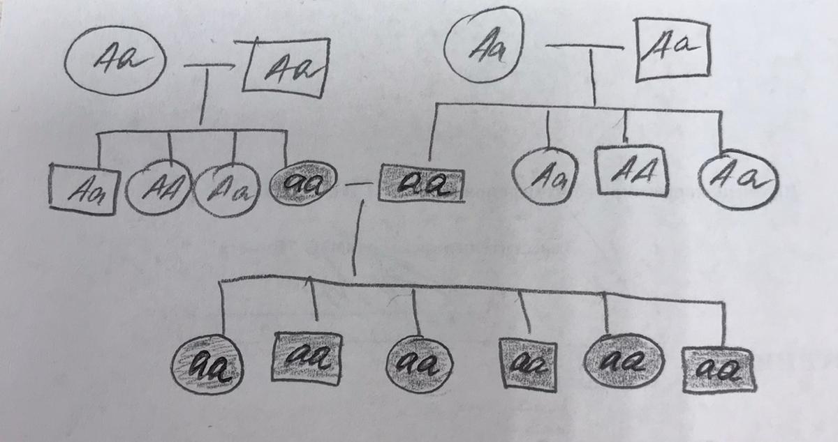 Определить характер наследования признака и расставить генотипы всех членов родословной