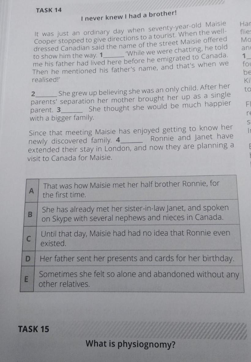 1. (A) That was how Maisie met her half brother Ronnie, for the first time.
