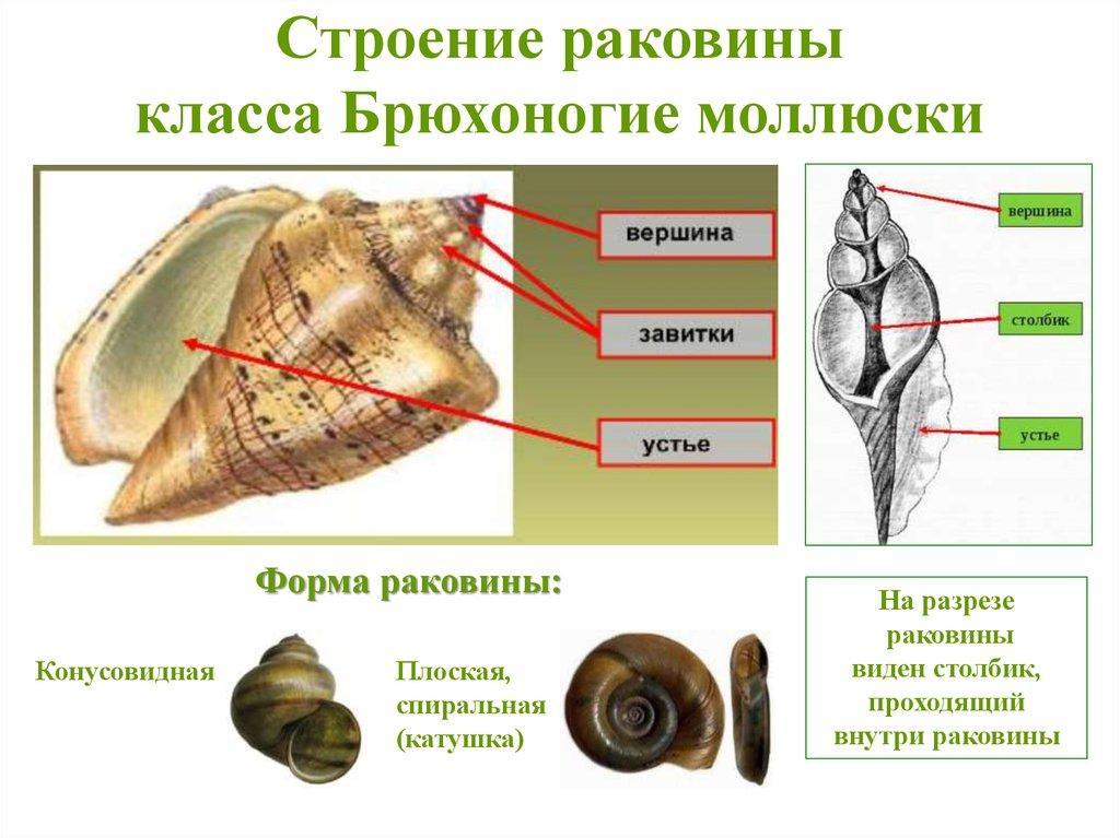 Ракушки брюхоногих ассимметричны, часто образуют завиток