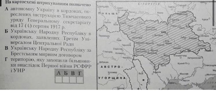 На картосхемі штрихуванням позначено кордони автономної Україну, окреслені Інструкцією Тимчасового уряду Генеральному секретаріату.