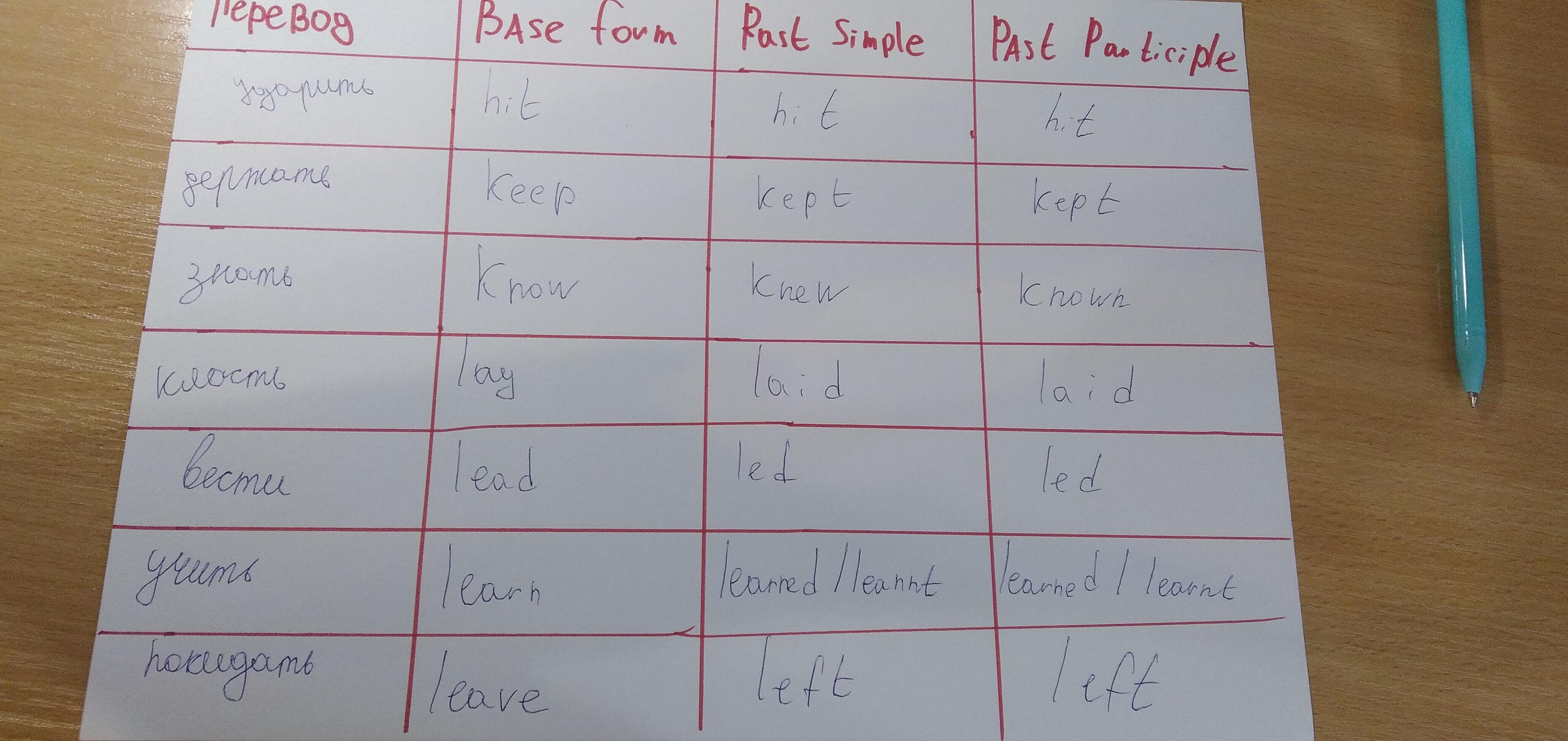 Переведите и напишите все формы глаголов исключений по английскому от hit до leave