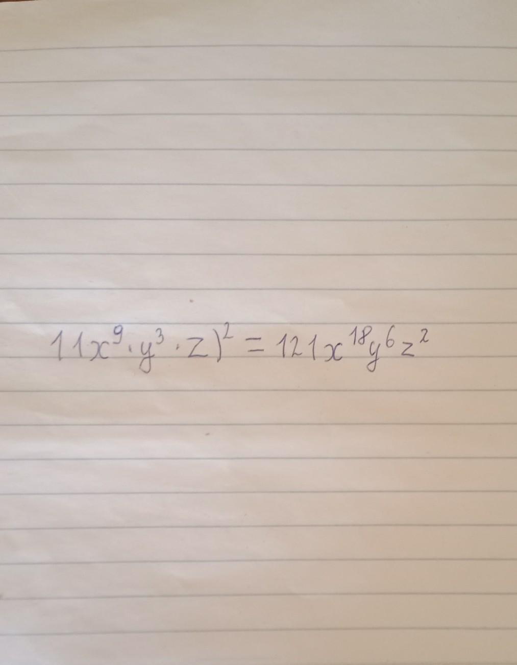 11х⁹×у³*z)² = 121x¹⁸y⁶z²