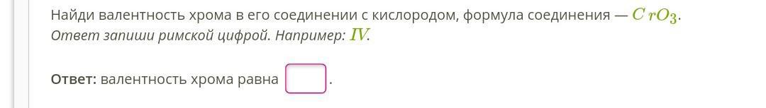 Валентность хрома равна 6 в оксиде хрома CrO3