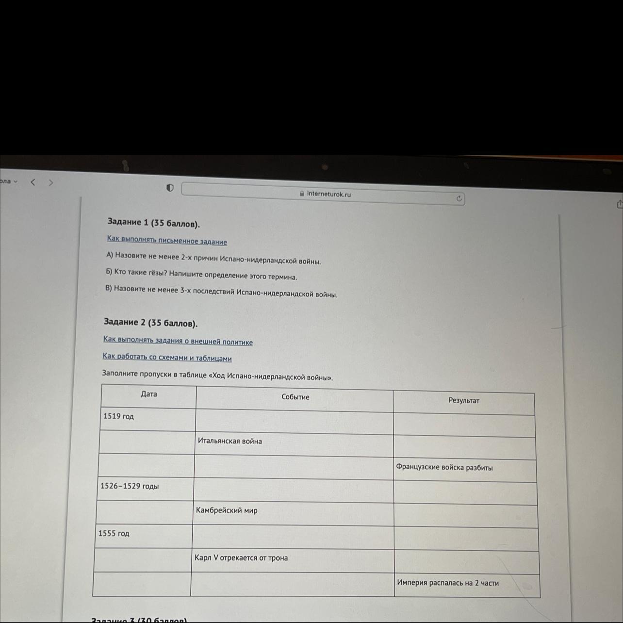 Заполните пропуски в таблице «Ход Испано-Нидерландской войны»,