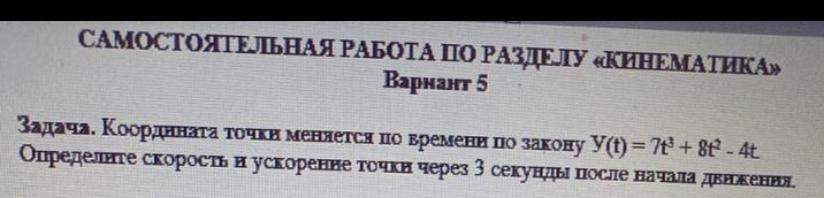 Возьмите производную и после этого подставьте значение 3с получите скорость, а потом еще одну производную и опять подставить 3с получите ускорение. Вперед.