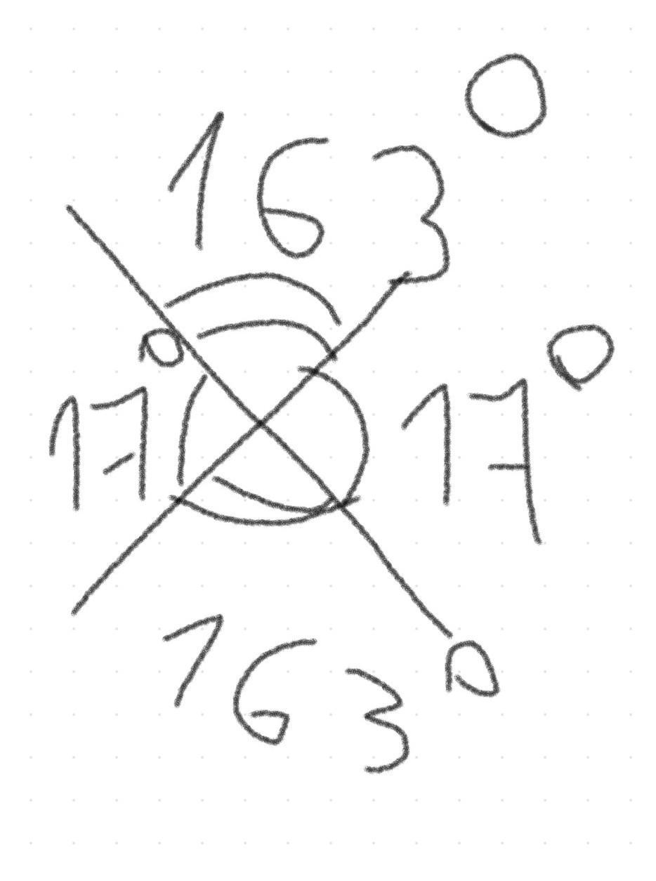 один з кутів який утворюється при перетині двох прямих,дорівнює 17°.знайди 3 інші кути.
