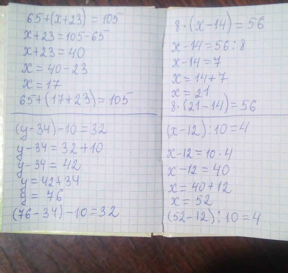 у - 34 = 32 + 10 (тут мы 10 прибавляем т. к. число изначально с минусом, а при переносе знак меняется)