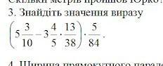 (5 3/10 - 3 4/5 * 13/38) * 5/84 = ( 53/10 - 19/5 * 13/38) * 5/84 =