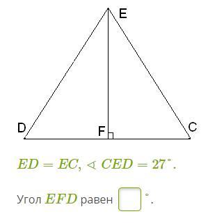 угол EFD равно 90°, так как EF по рисунку является высотой треугольника DEC