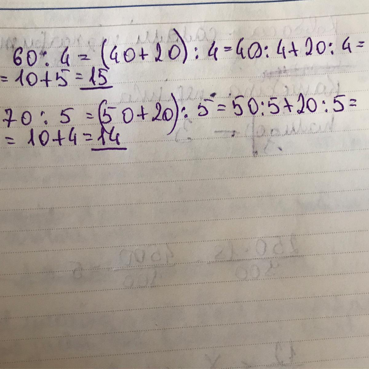 60:4=(40+20):4=40:4+20:4=10+5=15