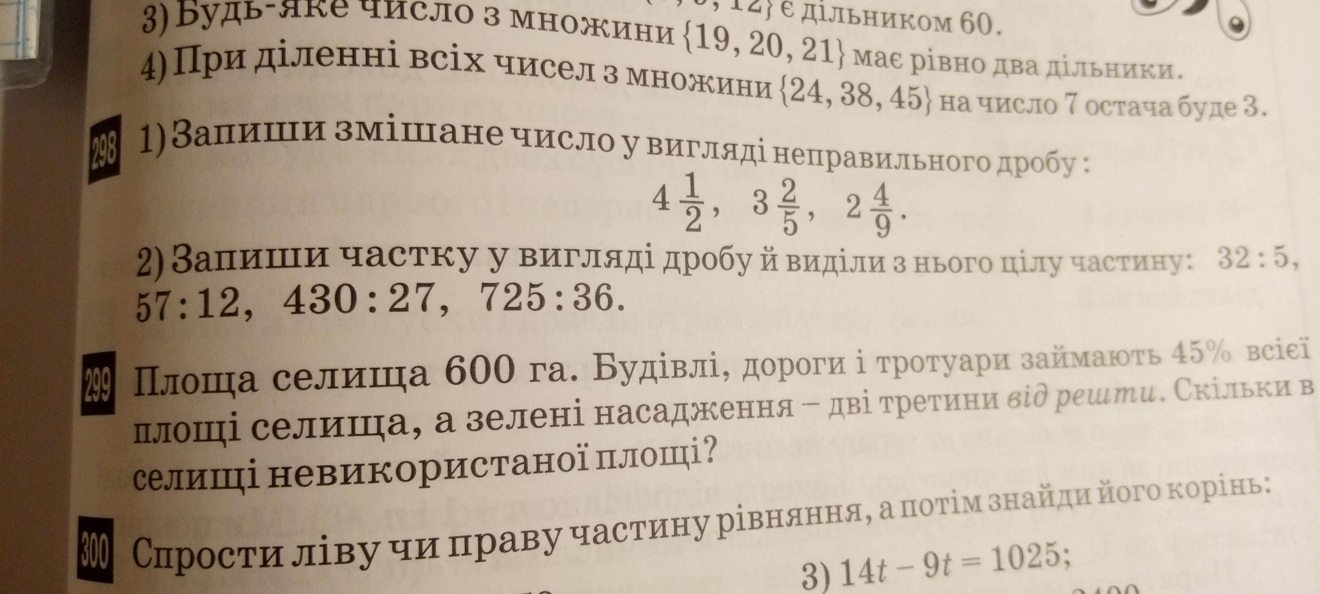 N298 (2) Запиши частку у вигляді дробу й виділи з нього цілу частину: