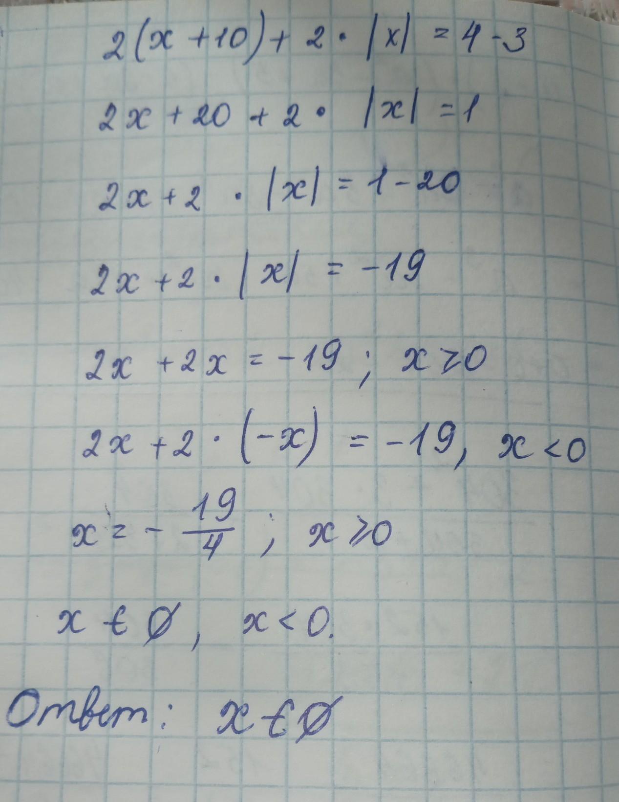 2 (х+10) + 2 |х| = 4-3