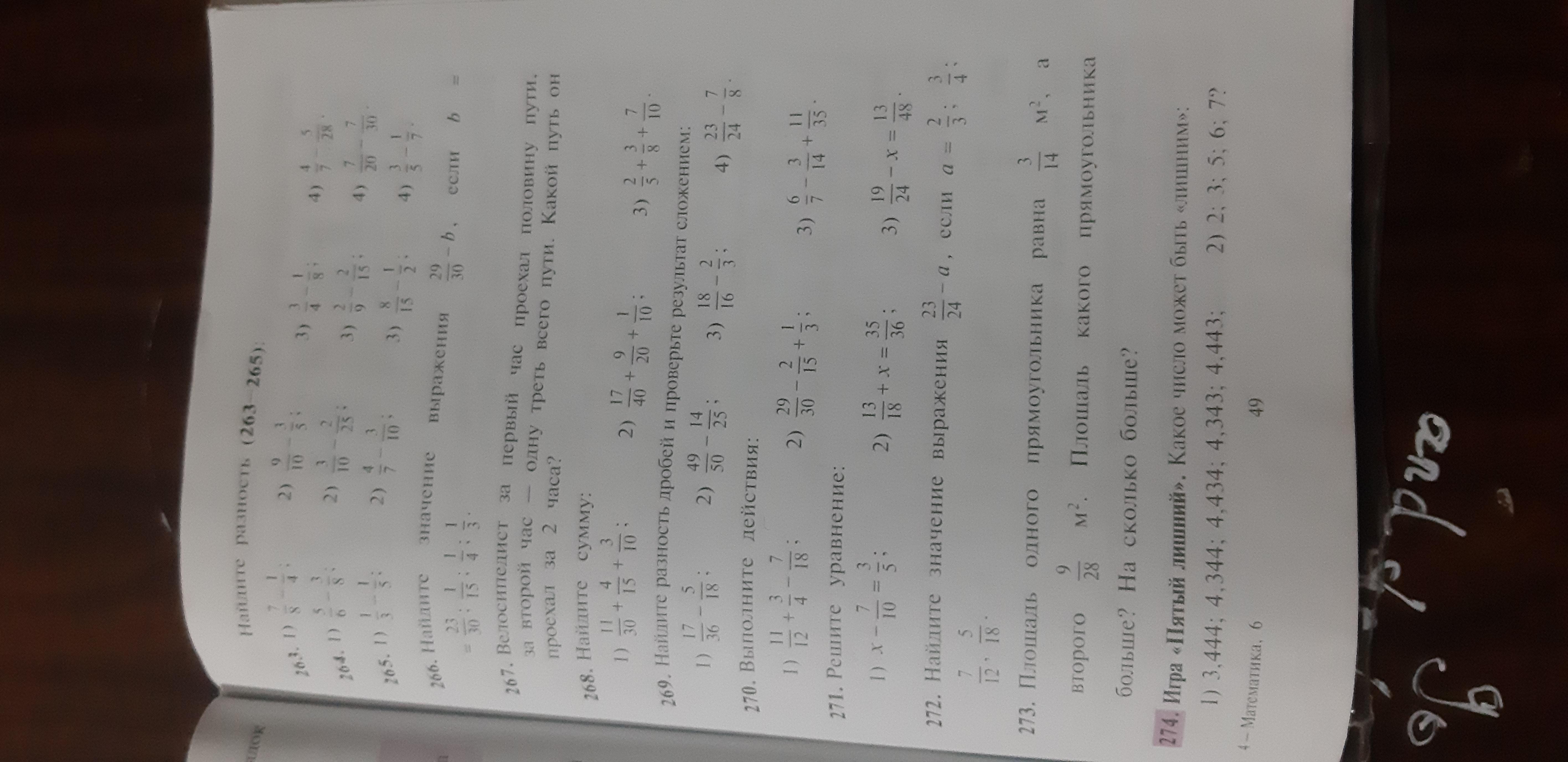 Nø_269. Найдите разность дробей и проверьте результат сложением. И можно другие примеры 270 271 272 и всё