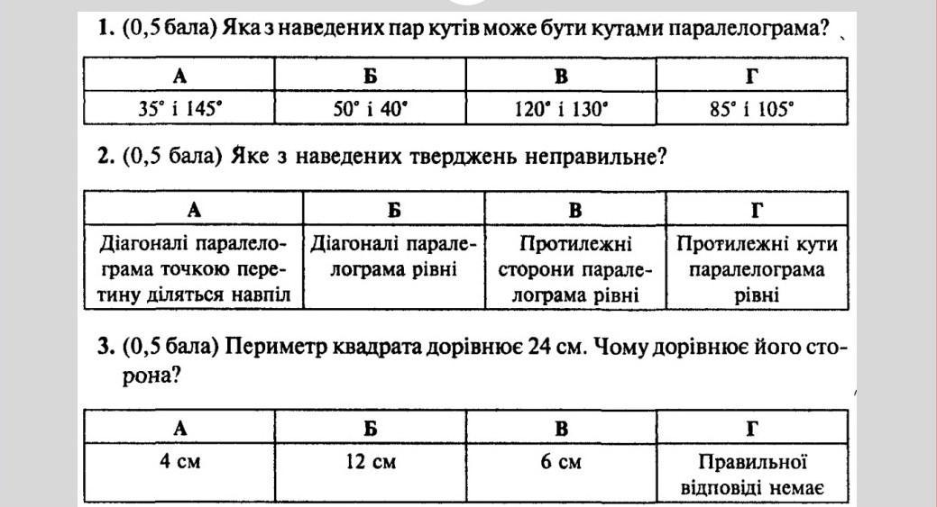 2. Б) не верно, т.к. диагонали у прямоугольника и у квадрата равны, а у параллелограмма в точке пересечения делятся пополам.