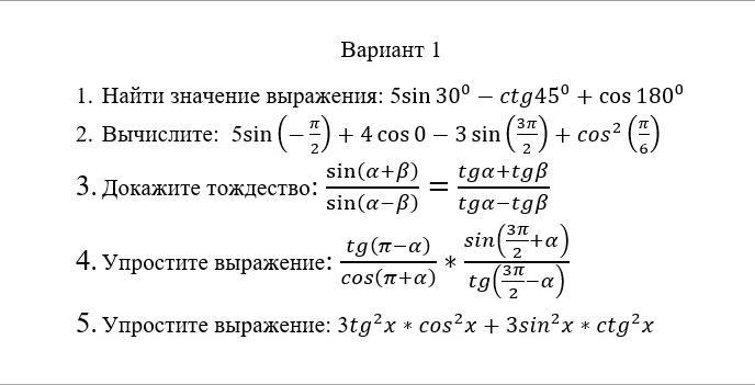 1)5sin30-ctg45+cos180=5*1/2-1+(-1)=1,5+(-1)=0,5
