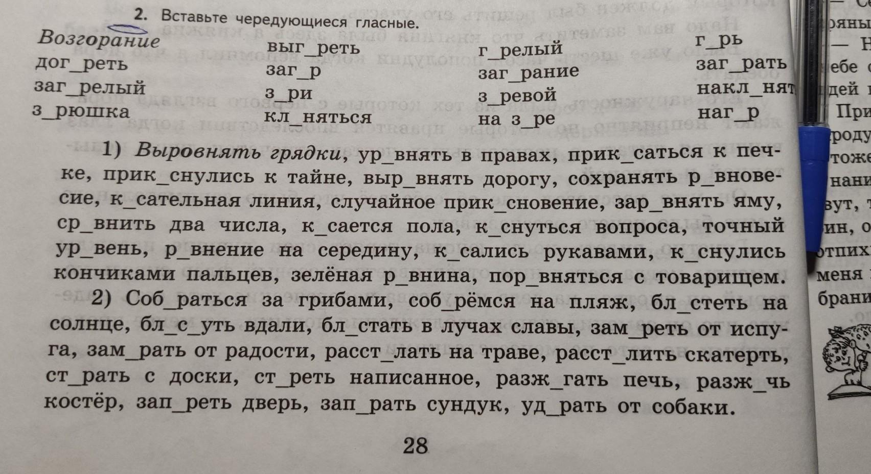 Собираться за грибами, соберёмся на пляж, блестеть на солнце, блеснуть вдали, блистать в лучах славы, замереть от испуга, замирать от радости, расстилать на траве, расстелить скатерть, стирать с доски, стереть написанное, разжигать печь, разжечь костёр, запереть дверь, запирать сундук, удирать от собаки.