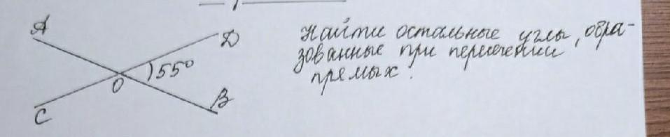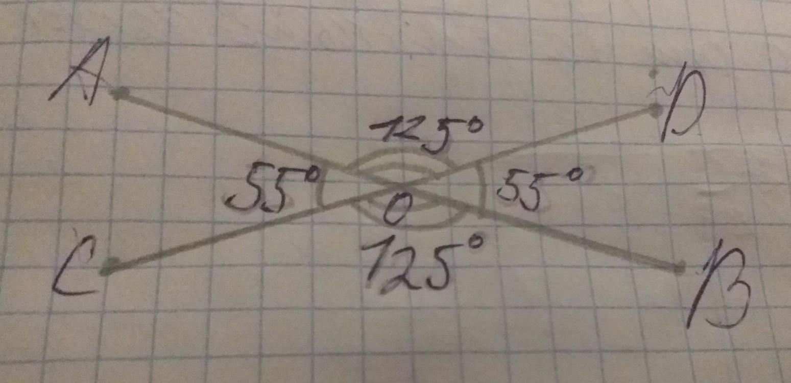 ∠AOD=180°-∠AOC=180°-55°=125° (смежные)