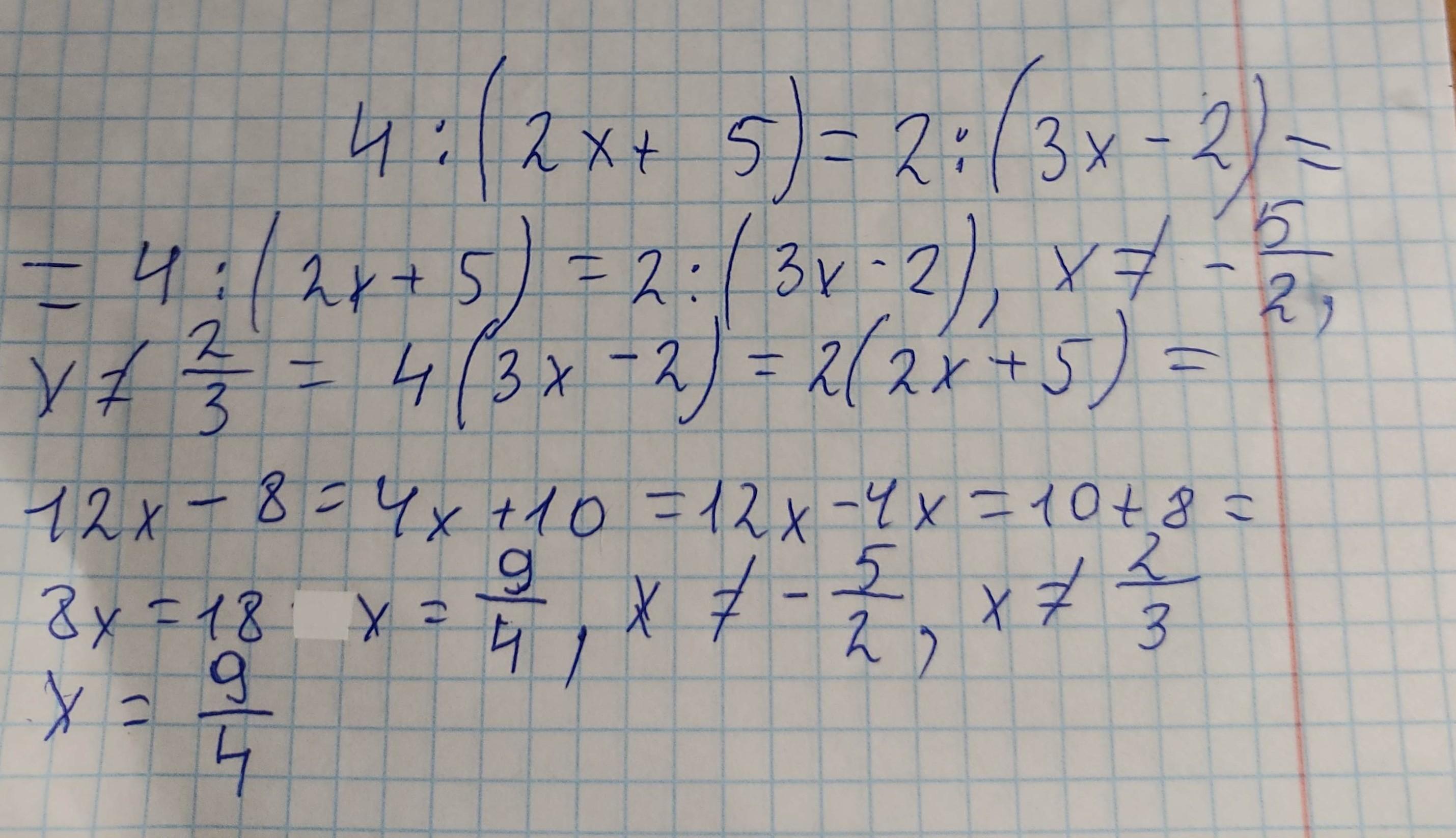 4:2x+5=2/3(x-2), x≠-5/2=-2,5 и x≠2