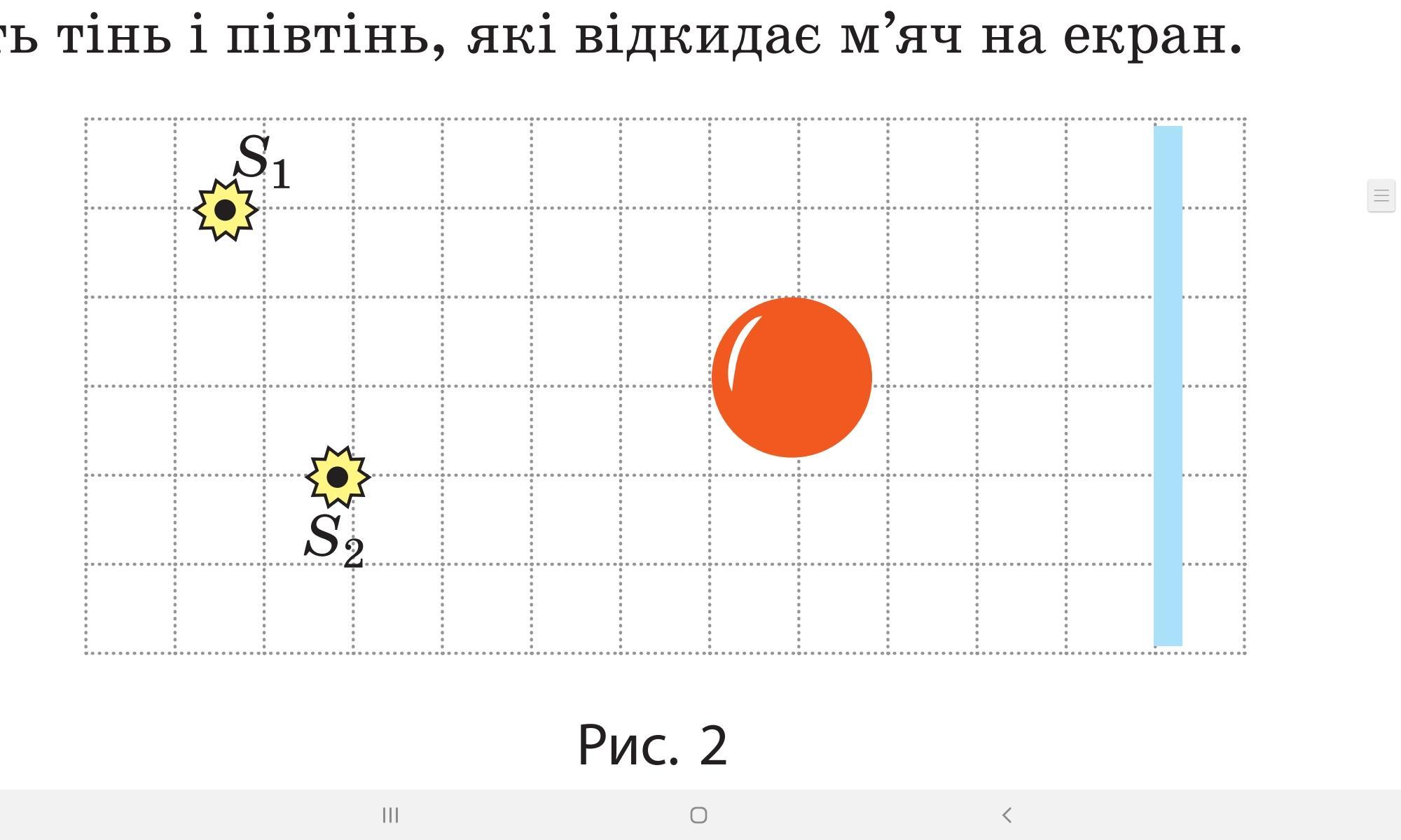 найте рисунок у зошиті, зобразіть тінь і півтінь, які відкидає м’яч на екран.