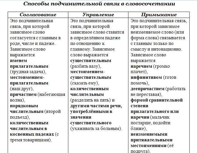 Установите соответствие между словосочетаниями и типом подчинительной связи.