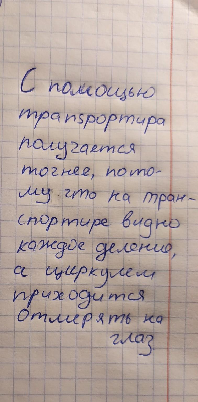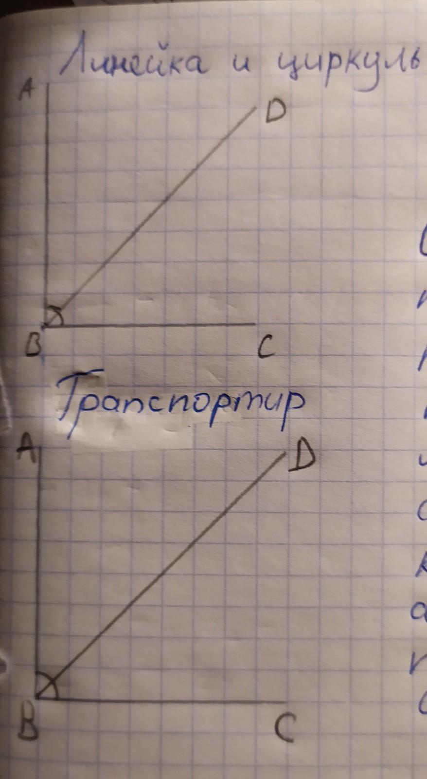 Начертите любой угол и постройте его биссектрису с помощью циркуля и линейки, а также транспортира. В каком случае биссектриса построена более точно?