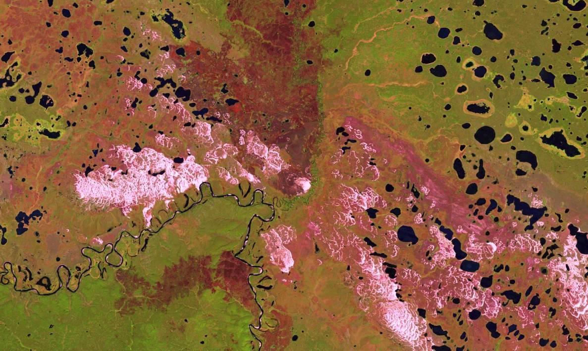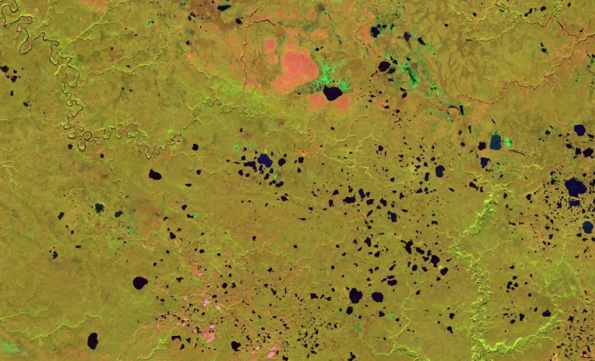 Рассмотрите внимательно приведённые ниже спутниковые изображения различных ландшафтов нашей страны и соседних стран. Определите, к какой природно-климатической зоне относятся данные территории. Выберите один из трёх вариантов: (1) бореальные леса (тайга), (2) тундры или (3) степи...