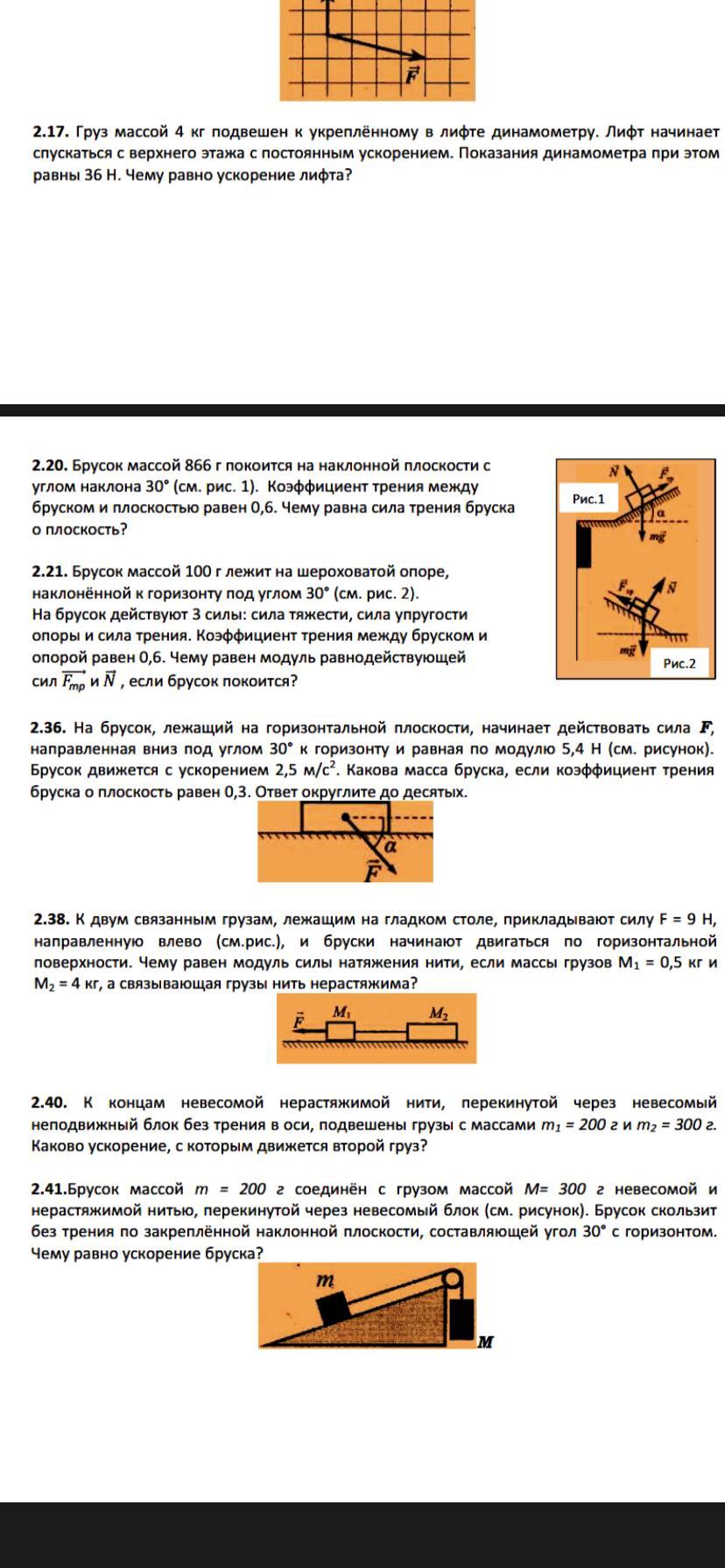 2.36) α=30 F=5.4 H a=2.5 м/с² μ=0,3